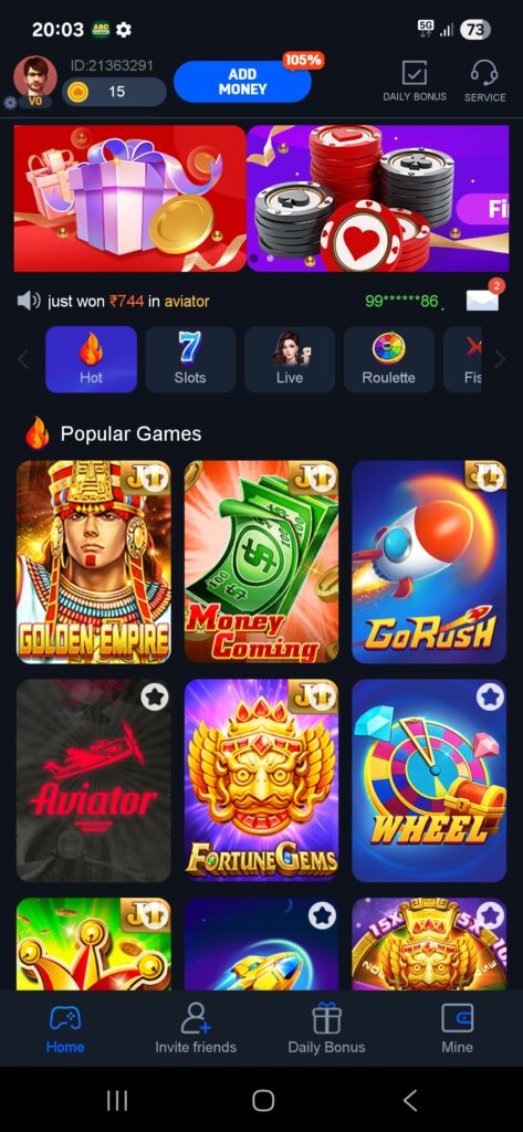 Aur aap rajana chale to aap rojana apne rupya ko withdrawal kar skate ho. Kyo ki es game me bahut sare game diye Gaye hain jiki se khelne bhi ek accha taknik se khelne bhi ja sakate hain