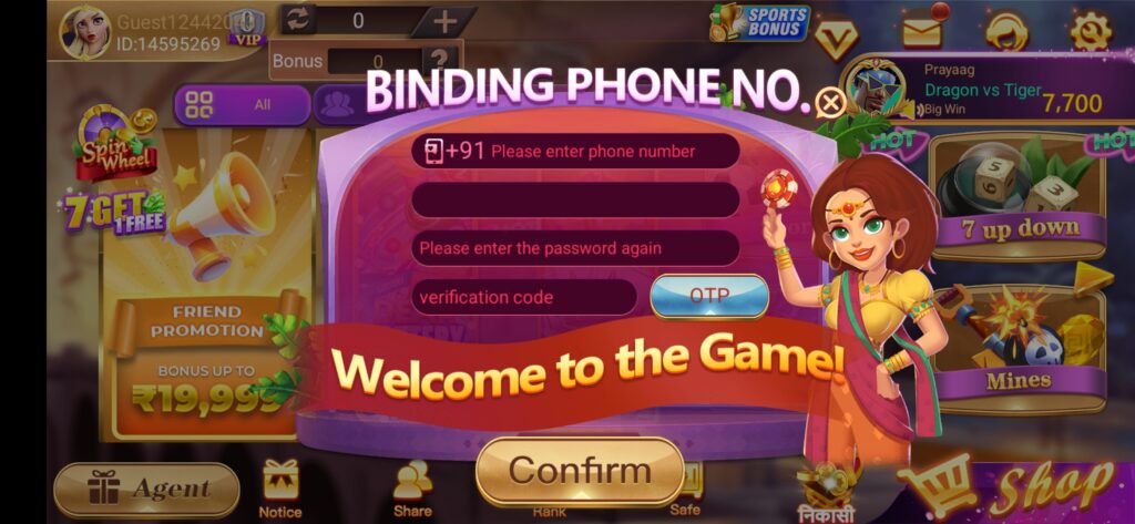 And after installing it in your mobile phone, you should verify it by playing the game and clicking on the Bind Phone option.