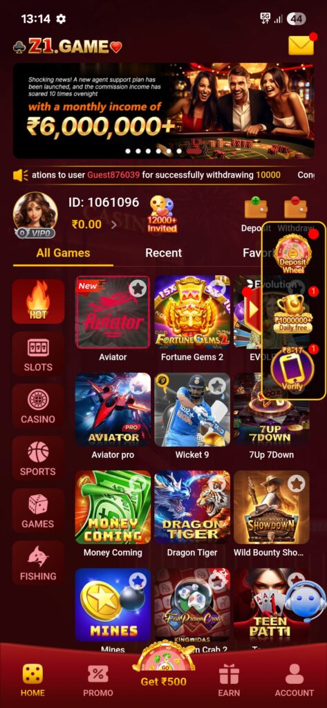 Z1 game se aap earn kiye gaye paisa ko withdrawal 5 minte ke ander kar sakate ho doston isme kahi se earn kiye gaye paisa nahi phasega yah game application bahut accha hain.